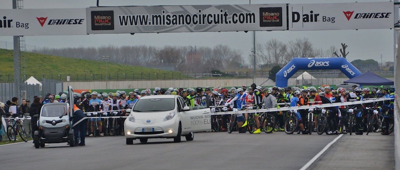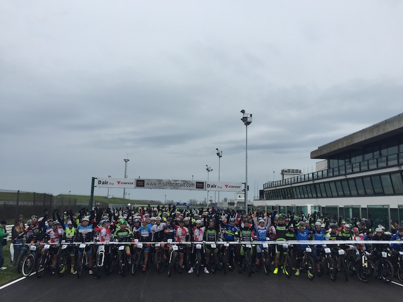 Quando nel 2013 Nacque la prima gara di Misano Open Day, 10 centimetri di neve e ghiaccio si abbatterono sulla costa adriatica. A quell’appuntamento si presentarono appena 30 persone. Nei due anni successivi la storia cambiò di poco, perchè violenti nubifragi la domenica mattina della manifestazione, scoraggiarono molti dei partecipanti dove partirono appena 60 persone. Il gruppo Valle del Conca da sempre organizzatore della prova però ambiva a qualcosa in più, di una semplice prova all’interno di un’ autodromo. Così a fine dello scorso anno abbiamo deciso di farla entrare come prima prova del Caveja Bike Cup e poi successivamente anche nel Mare e Collina. Anche quest’anno il tempo è stato poco clemente (una tradizione è una tradizione no?), ma eravamo comunque pronti sia a livello di percorso, che a livello di logistica. Per fortuna ieri mattina non pioveva e questo ha migliorato non di poco l’atmosfera all’interno dei box di Misano.